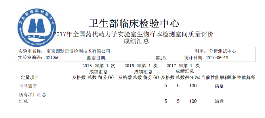 2017年6月20日,華威醫(yī)藥集團(tuán)全資子公司南京西默思博檢測(cè)技術(shù)有限公司以滿(mǎn)分的成績(jī)通過(guò)2017年全國(guó)藥代動(dòng)力學(xué)實(shí)驗(yàn)室生物樣本檢測(cè)室間質(zhì)量評(píng)價(jià),該評(píng)價(jià)是由衛(wèi)生部臨床檢驗(yàn)中心組織實(shí)施,用于驗(yàn)證實(shí)驗(yàn)室對(duì)于生物樣本檢測(cè)能力,是公認(rèn)的實(shí)驗(yàn)室檢測(cè)質(zhì)量認(rèn)可的重要依據(jù)。西默思博擁有先進(jìn)的分析測(cè)試設(shè)備和專(zhuān)業(yè)的技術(shù)人員,以質(zhì)量求生存,以“科學(xué)、嚴(yán)謹(jǐn)、求是、卓越”的態(tài)度,提供規(guī)范、優(yōu)質(zhì)、高效的醫(yī)藥科研檢測(cè)技術(shù)服務(wù)。本次滿(mǎn)分通過(guò)彰顯我單位具有專(zhuān)業(yè)可靠的檢測(cè)實(shí)力。