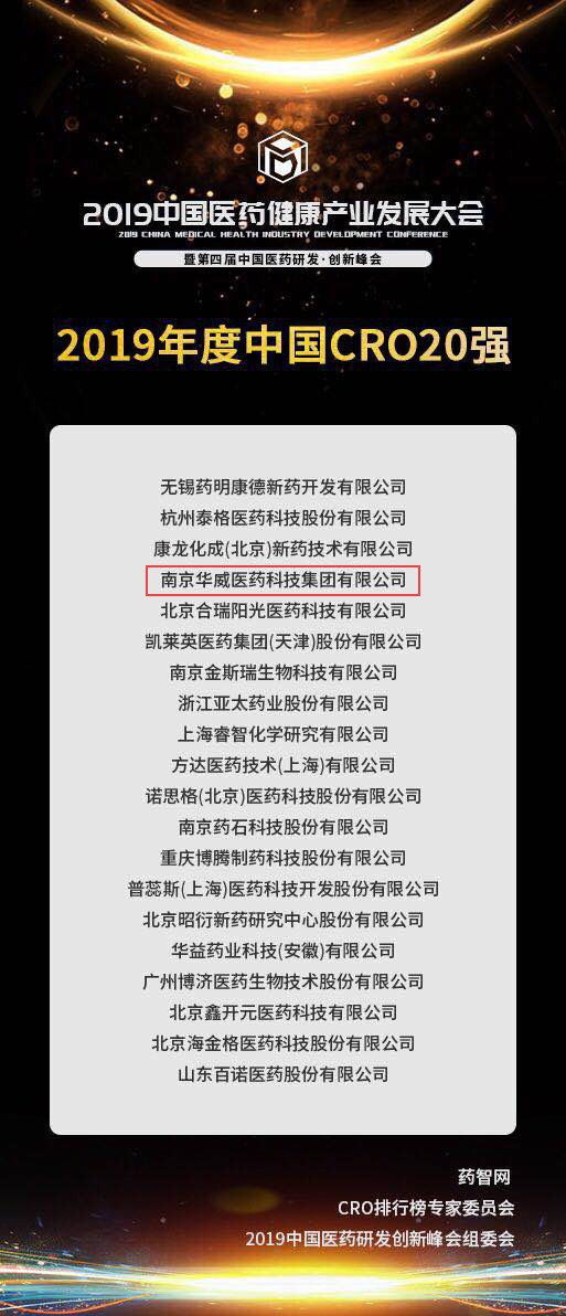 超贊!2019年度中國CRO企業(yè)20強(qiáng)榜單新鮮出爐