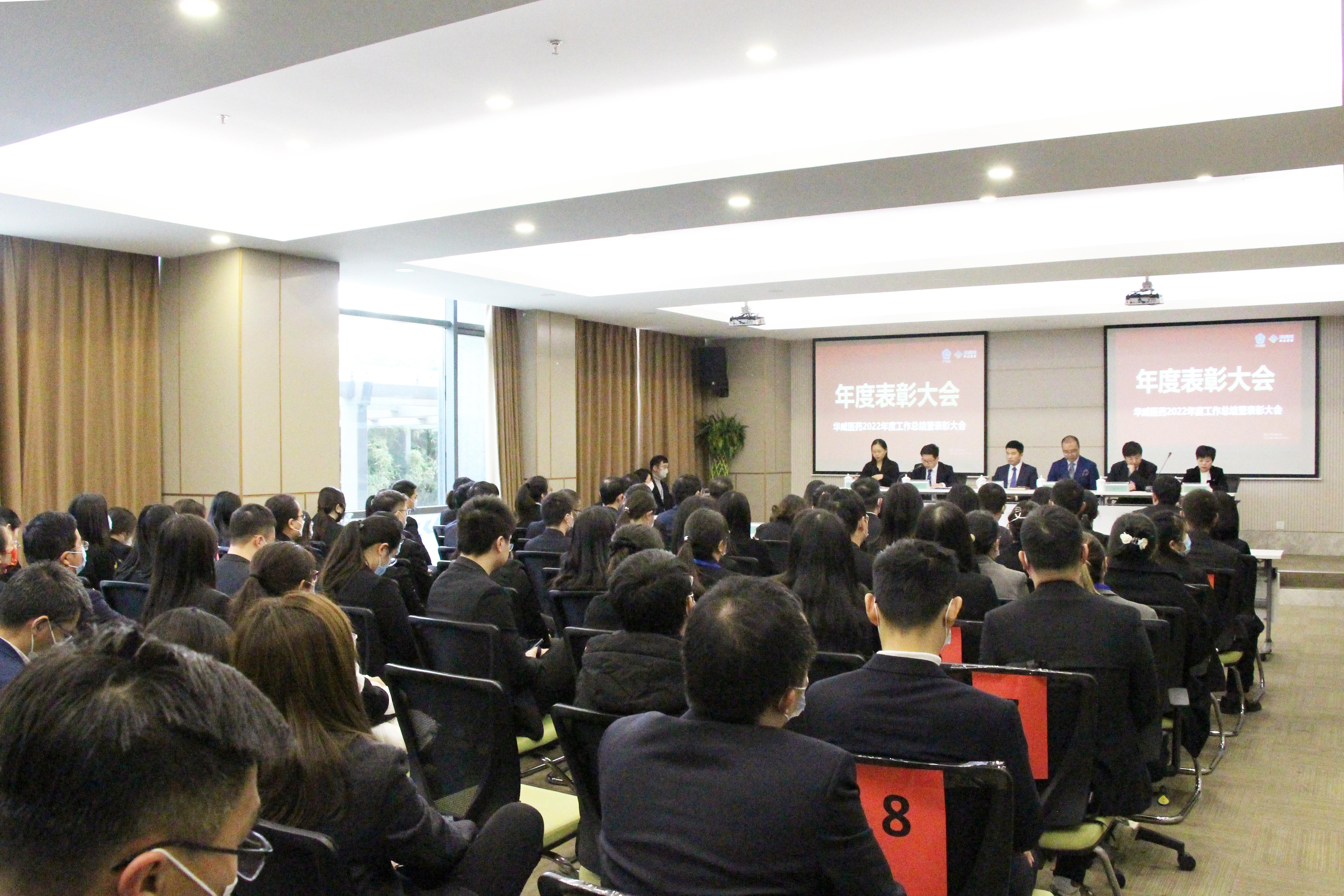 華威醫(yī)藥優(yōu)秀員工及百日攻堅創(chuàng)效行動獲獎者合影