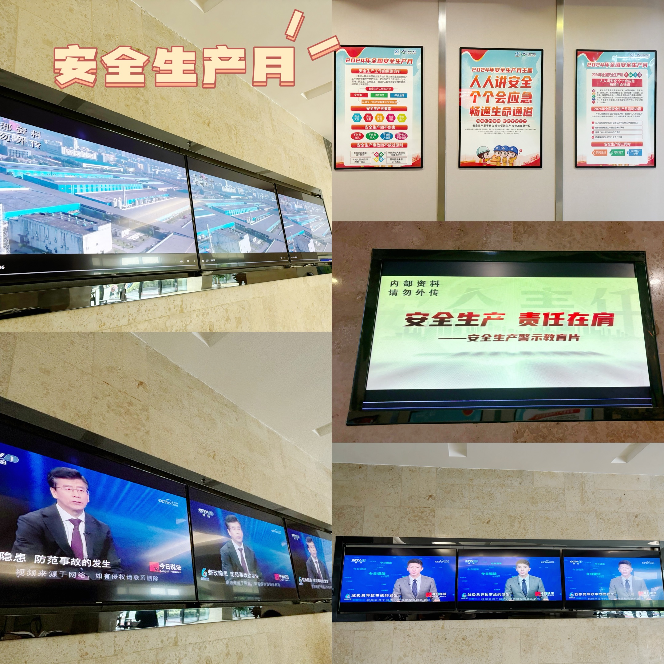 線上線下齊發力,安全宣傳見實效!為充分發揮安全生產月宣傳教育源頭性、基礎性作用,華威醫藥找準關鍵點、緊抓突破口,堅持“安全工作,宣傳先行”,持續在兩棟研發大樓的安全宣傳上下功夫、做文章。通過設置宣傳展板、宣傳海報、以及大屏幕視頻展示等宣傳舉措,持續地、直觀地將安全宣傳工作落到實處,引導員工學會發現和消除安全隱患。