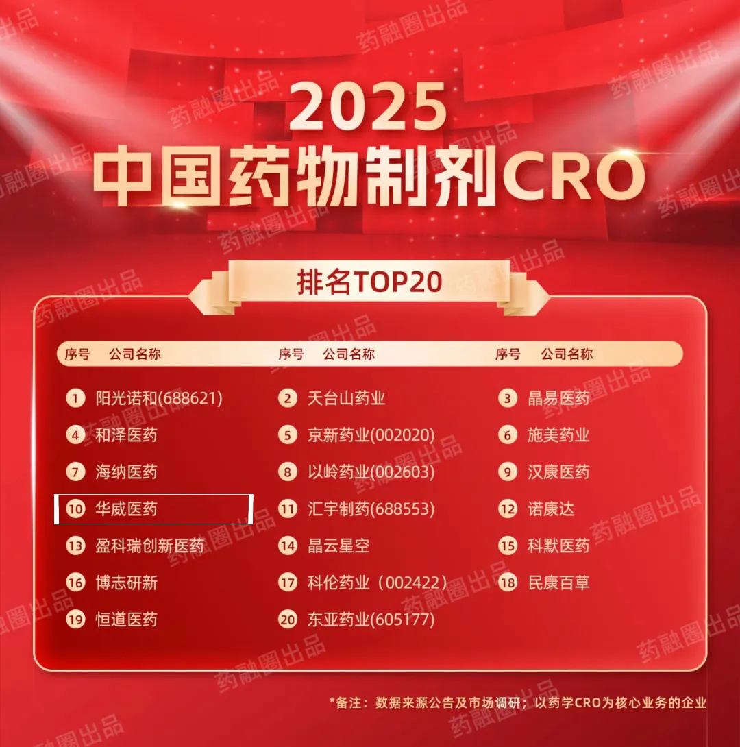 8月1日,在2025CMC-CHINA第七屆中國制藥工業(yè)博覽會的盛典上,備受行業(yè)矚目的《2025年中國制藥工業(yè)TOP101》及10大核心產業(yè)鏈榜單正式揭曉。華威醫(yī)藥憑借卓越的綜合實力,一舉斬獲三項重磅榮譽:強勢入選“2025中國藥物制劑CRO排名TOP20”、總經理焦培想女士榮膺“中國醫(yī)藥CRO企業(yè)領軍創(chuàng)始人”稱號、同時獲評“藥融圈2025生態(tài)合作伙伴”。三大獎項的加冕,全面彰顯了華威醫(yī)藥在技術研發(fā)、領導力建設及產業(yè)協(xié)作方面的標桿地位。